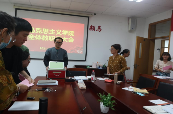 最后,马院全体教职工对学院《海洋之神590线路检测中心四级及以下专任教师岗位职责和聘用条件》进行投票表决。