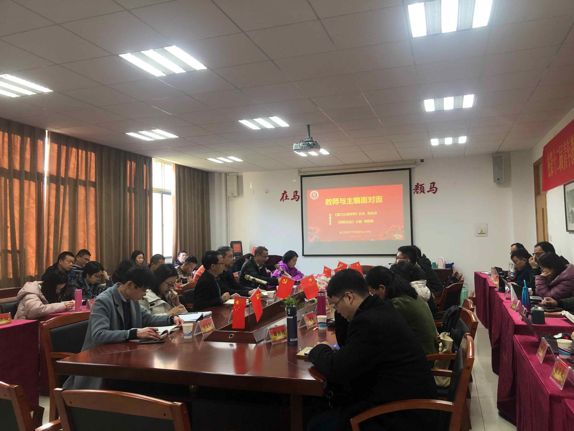 11月23日下午,3-211会议室济济一堂。为了进一步提高教师科研水平、助力教师科研成长,学院邀请《浙江社会科学》杂志社社长俞伯灵研究员和《财经论丛》副主编龚刚敏教授来公司和全体教师做面对面交流学术论文撰写工作。相关外院兼职教师、硕导等也闻讯而来。