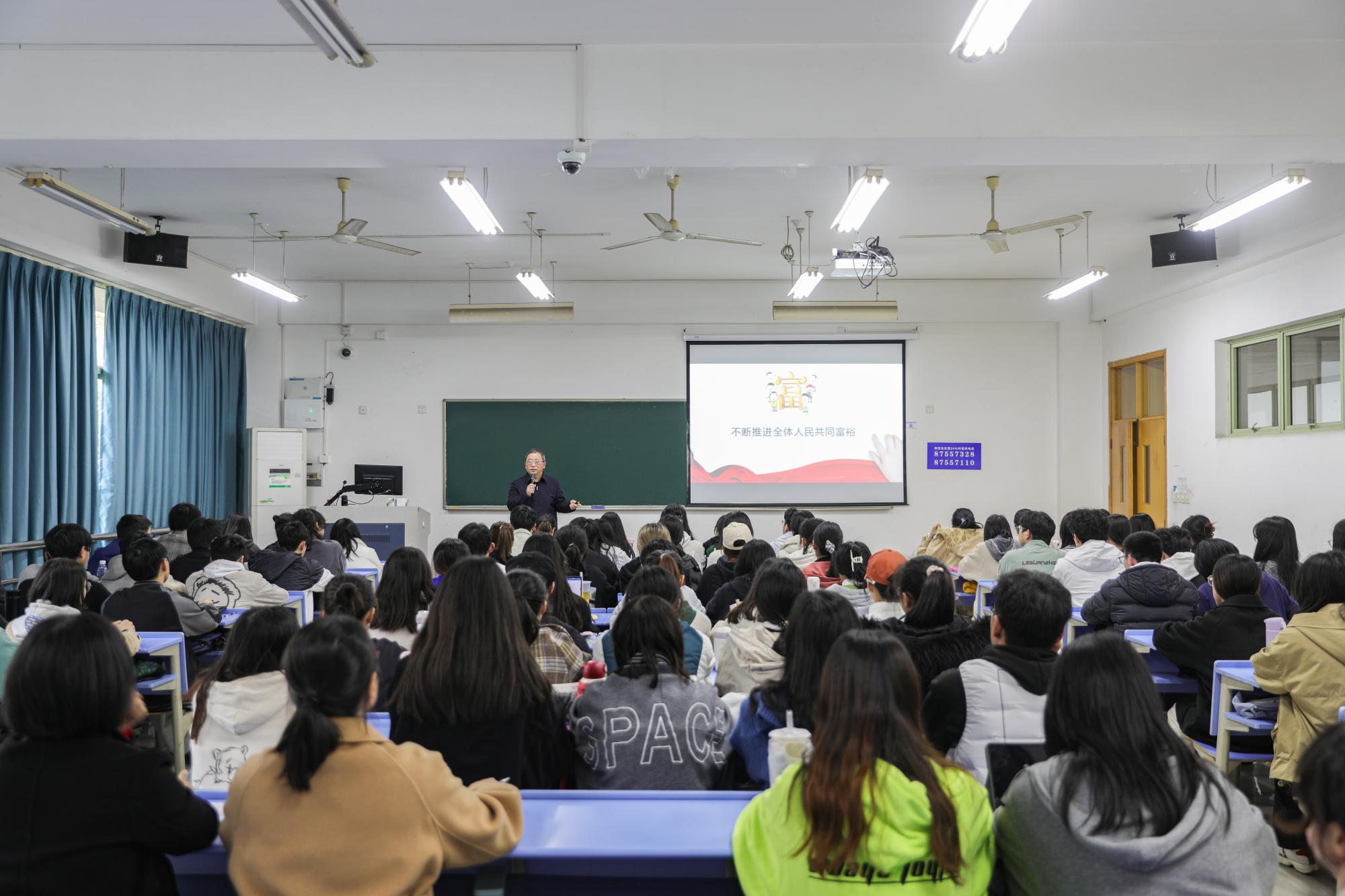 钟晓敏从国家决策的高度、理论研究的深度、浙江实践的力度等三个维度,围绕共同富裕的理论历史回顾、习近平总书记关于共同富裕的重要论述、共同富裕的科学内涵与实践路径、浙江高质量发展建设共同富裕示范区等五个方面进行了深入细致的讲解。他和同学们分享了改革开放以来生活的巨大变化,回顾了中华民族千百年来对共同富裕的追逐和梦想,探讨了新中国成立以来共产党人对共同富裕的理论发展和实践探索。