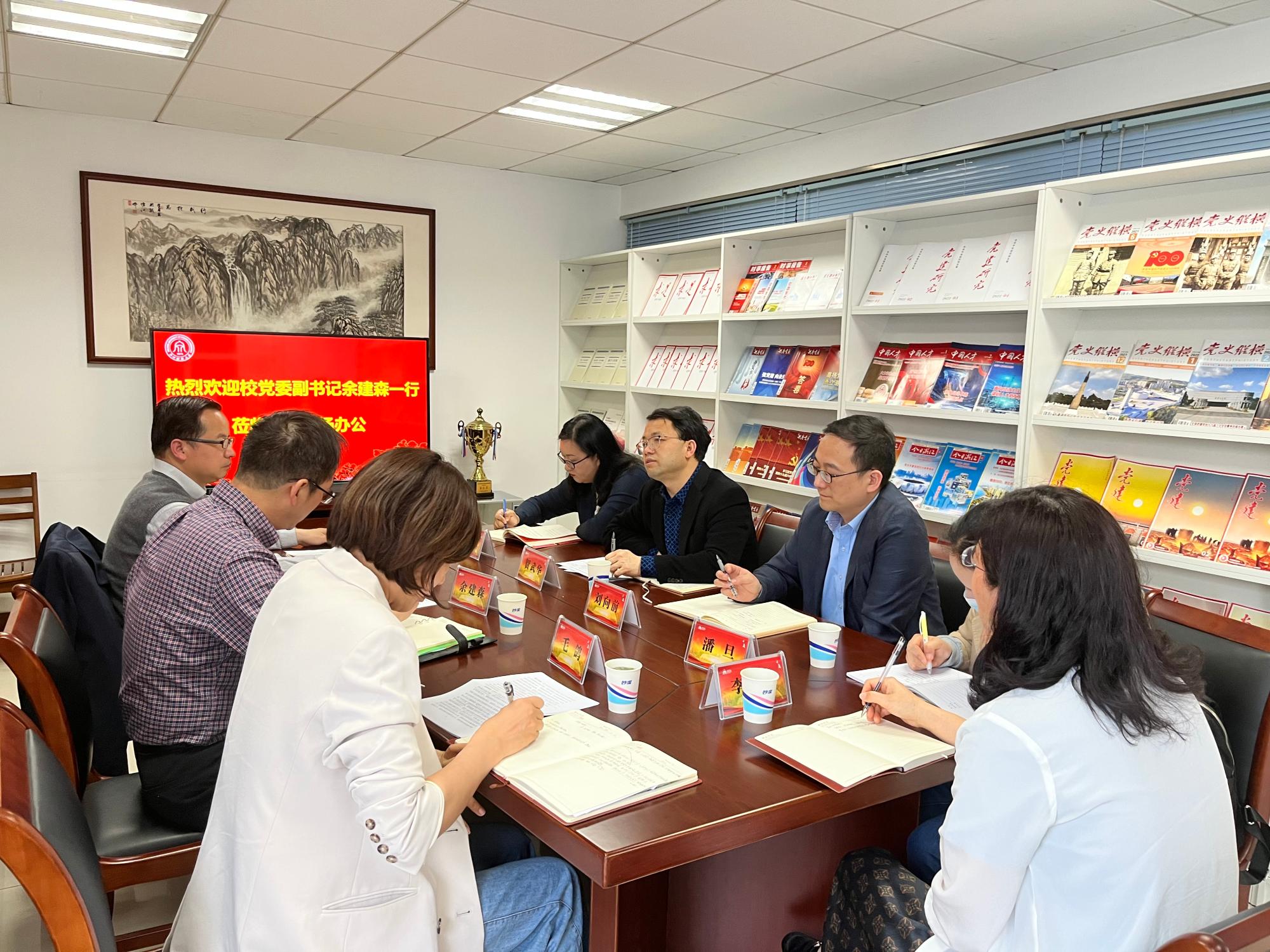 4月21日下午,公司党委副书记余建森,党委委员、宣传部部长楼胆群,宣传部副部长毛鸽一行到海洋之神590线路检测中心开现场办公会。会议聚焦马院推进巡视整改问题的落实和学院高质量建设推进情况。海洋之神590线路检测中心班子成员、教研室主任与支部书记代表与会。