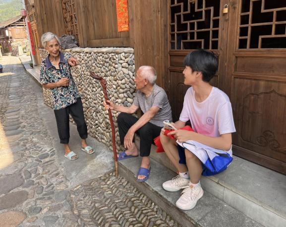沈思婷:本次实践教学活动给我留下最深刻印象的是在大均乡基层干部柳书记。以她为代表的基层工作者们制定45天改进村内环境计划,带领整个村整改乡村环境;打开新思路,通过直播等方式,把当地的茶叶等农产品销往全国,帮助当地的妇女致富。不仅如此,在促进人民经济富足的同时,她也致力于丰富妇女们的精神世界,努力让当地妇女们的舞台不再局限于家里三尺灶台,于是她组织成立了畲歌队,通过现代科技手段将当地传统的畲族歌舞走向网络。在与畲歌队成员蓝姐学习的过程中,我们感受到了畲族传统的歌舞表演的悠久历史和丰富的文化意义,以及歌舞带给当地人的乐观快乐。