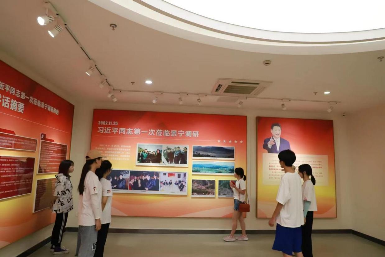 (参观景宁畲族自治县党群服务中心,聆听吴春萍主任介绍浙西南革命精神)