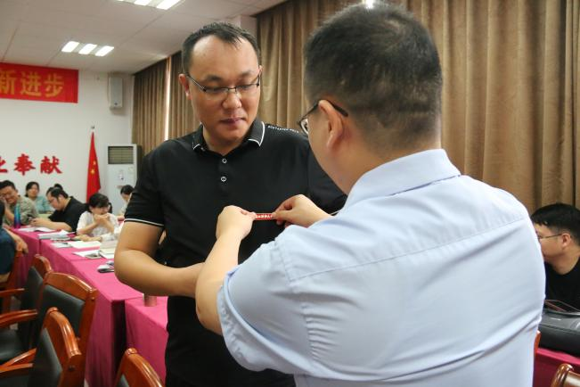 随后,公司党委副书记刘向前、副经理邢雁欣分别为新入职教师佩戴校徽、赠送入院礼并合影留念。在场教师以热烈掌声欢迎新教师加盟。
