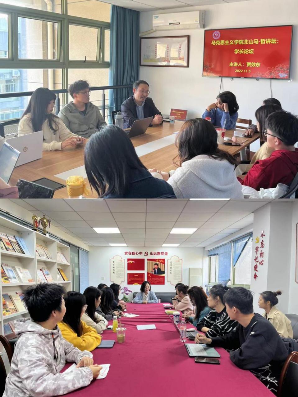 员工会成立仪式后,海洋之神590线路检测中心北山马·哲讲坛:学长论坛在学院楼517、504A举行,郭祺佳、贾效东两位员工分别为马克思主义法治思想中国化研究专业、伦理学专业的同学分享自身经历,给予学弟学妹们工作和学业方面的指导。