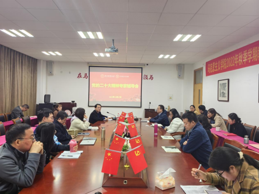 贺武华强调,学院要做好推动党的二十大精神进课堂、进教材、进头脑,进一步提升思政课教学水平;深刻领会报告精神实质,准确把握报告丰富内涵,产出更多理论研究成果;以党的二十大精神为引领,落实立德树人根本任务,坚守为党育人为国育才使命,紧扣学院十四五发展目标,为加快学院跨越发展作出更大贡献。