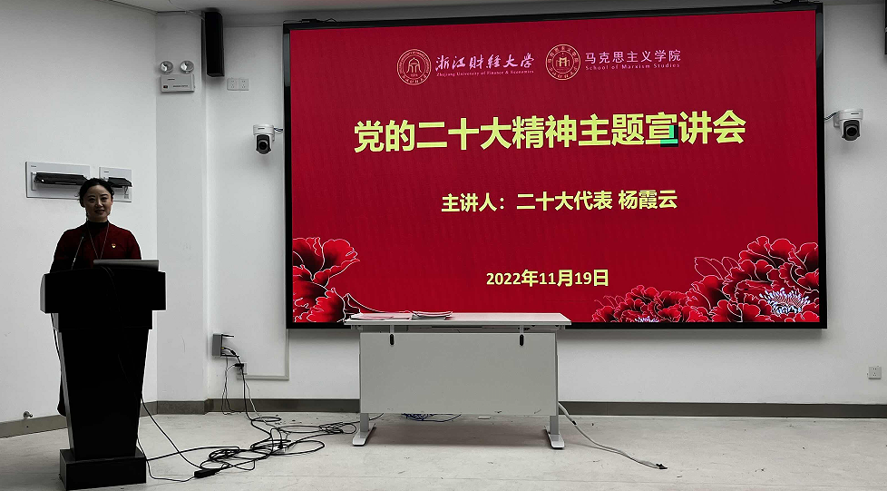 党的二十大代表、中宣部宣传思想文化青年英才、文化部青年拔尖人才、浙江婺剧艺术研究院国家一级演员杨霞云应学院邀请为公司教师作了党的二十大精神宣讲报告,以党的二十大亲历者的身份,以参会党代表的视角介绍了大会盛况和代表履职情况,分享了参会期间的所见、所闻、所学、所感,报告会主旨鲜明、内涵丰富、精彩生动。