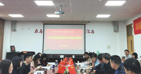 在答辩主席宣布开会后,答辩秘书依照顺序简要介绍了2020级研究生的简况、课业成绩及科研情况。答辩流程分为员工毕业论文PPT展示陈述、答辩老师点评提问、员工回答、答辩老师总结点评四个环节进行。